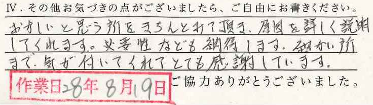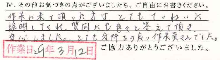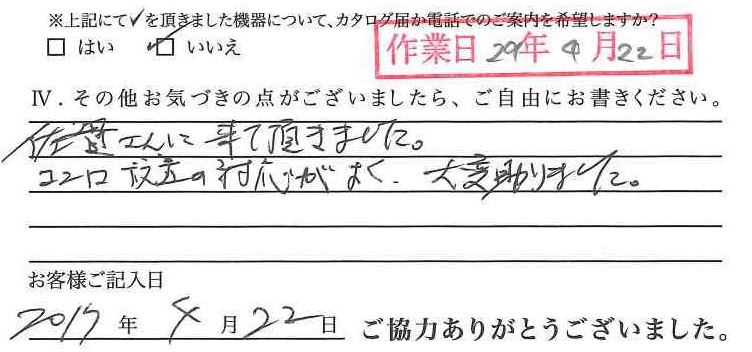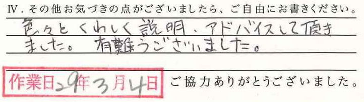 お寄せいただいた声(納品・取付)