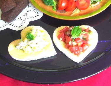 - サンドウィッチ用のパンをハート型に抜き、表面に[A]を塗り、両面焼きのグリル(調理プレート使用)で強火2~3分焼く。