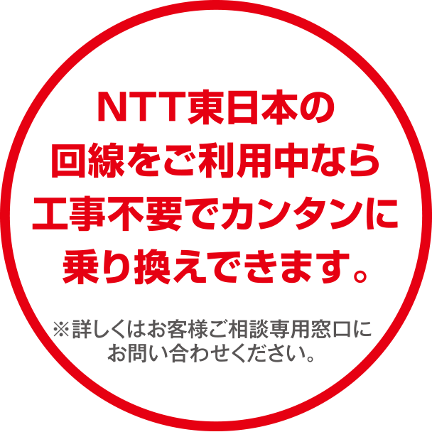 - A:フレッツ光からの転用であれば工事はありません。既に光回線を導入頂いているのでお手続きのみです。