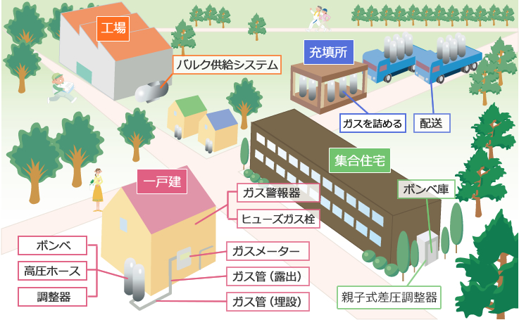プロパンガスは独立したエネルギーとして、お客さまごとに個別に供給が可能な「分散型エネルギー」です。