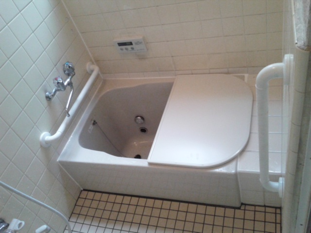 浴槽の水が翌日減るとの事でお伺いしました。経年で浴槽の排水付近で水漏れでした。浴室のリフォームは考えていないとの事で浴槽の交換を提案いたしました。予算的にも合っていたとおっしゃっていただきました。床のタイルもこの機会に明るい色を選定されまた今後の事を考え手すり受注いただき、お客様も大変満足していただきました。