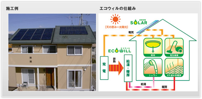 また、マイホーム発電「住宅用太陽光発電」や「エコウィル」と組み合わせるダブル発電でさらに経済的。