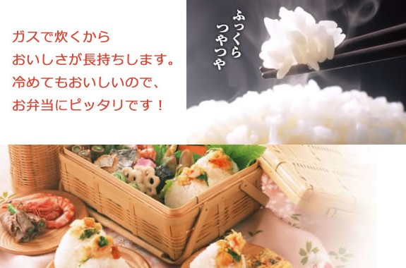 ガスならではの強火でかまど炊きの味を再現。