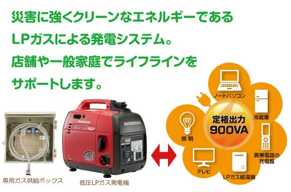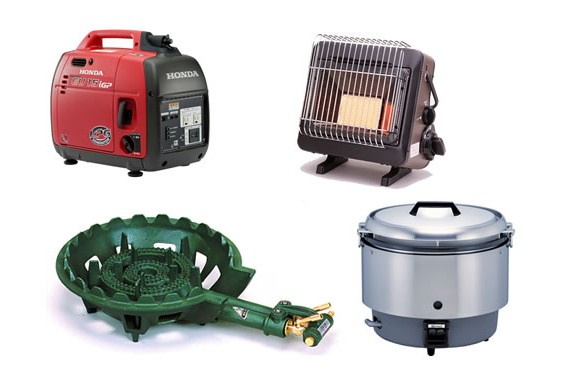コンロ、炊飯器(炊き出しセット)や発電機など、LPガスの災害時や停電時に活躍する機器をご紹介します。