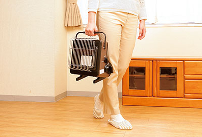万が一、本体が倒れても、自動的にガスを遮断してストーブを消化します。 - 圧力感知安全装置