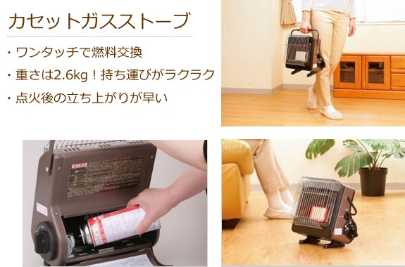 ワンタッチで燃料交換 重さは2.6kg。持ち運びラクラク 点火後の立ち上がりが早い