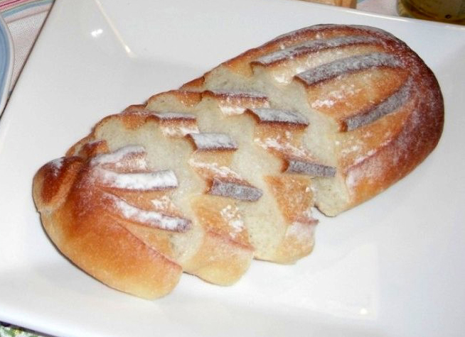 9. ≪焼成≫表面に粉を振ってクープを入れガス高速オーブン180℃で20分焼き、出来上がり。